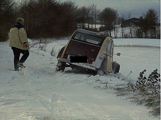 Meine Scheiben waren etwas beschlagen und ehe ich mich versah, nur eine winzige kleine Unaufmerksamkeit, ich schwöre, rutschte ich rechts etwas ab. Die Schneeverwehungen täuschten glatte Fläche vor, doch das da hieß Abhang. Den rutschte ich dann noch etwas weiter, versuchte gegenzulenken, ohne Erfolg.