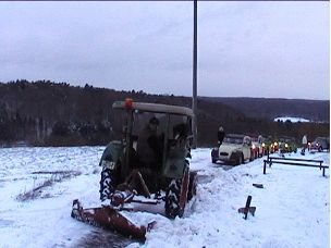 Da kam plötzlich ein Traktor mit Schleppflug um die Ecke getuckert, versuchte etwas umständlich den Weg frei zu bekommen, was dann irgendwann gelang.