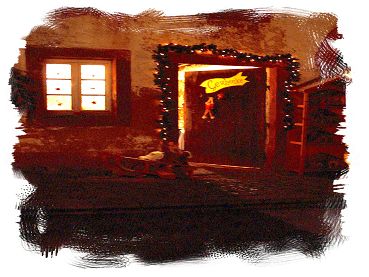 Das wirklich Reizvolle an Dudeldorfs Weihnachtsmarkt im Gegensatz zu den Märkten in Größstädten war die Einbeziehung der Anwesen. Die Autos flogen raus und in nett dekorierten Garagen, mit langen blaugoldenen Stoffbahnen verhangenen Innenhöfen und Einfahrten verkauften die Dudeldorfer fleißig mit. Oder man dekoriert seinen Hauseingang nebst Fenster, stellt noch einen kleinen Schlitten davor, nagelt einfach ein gelbes Schild mit der Aufschrift "Geschenke" an die Haustür und läßt diese einladend geöffnet. Wenn das nicht neugierig macht?